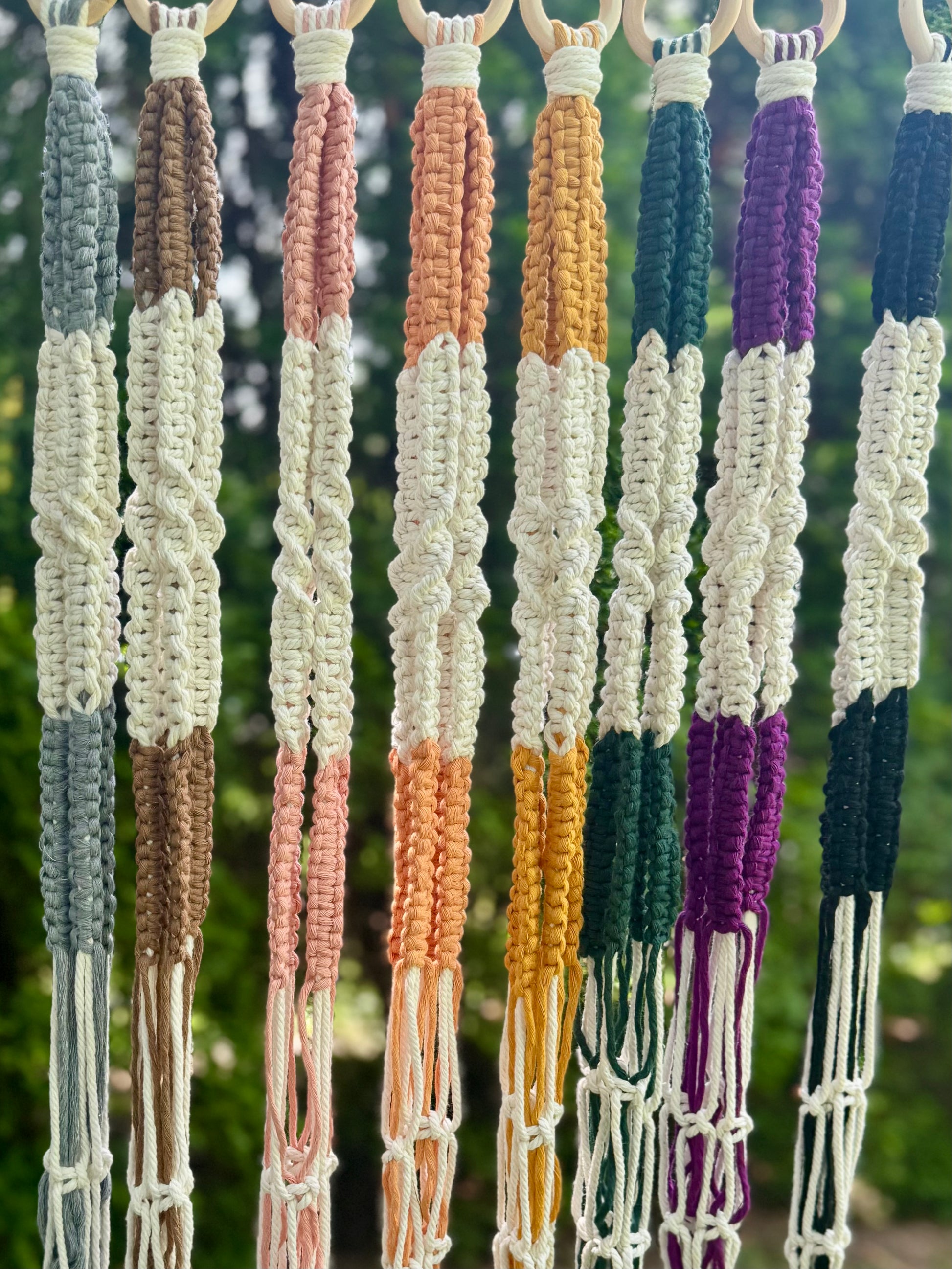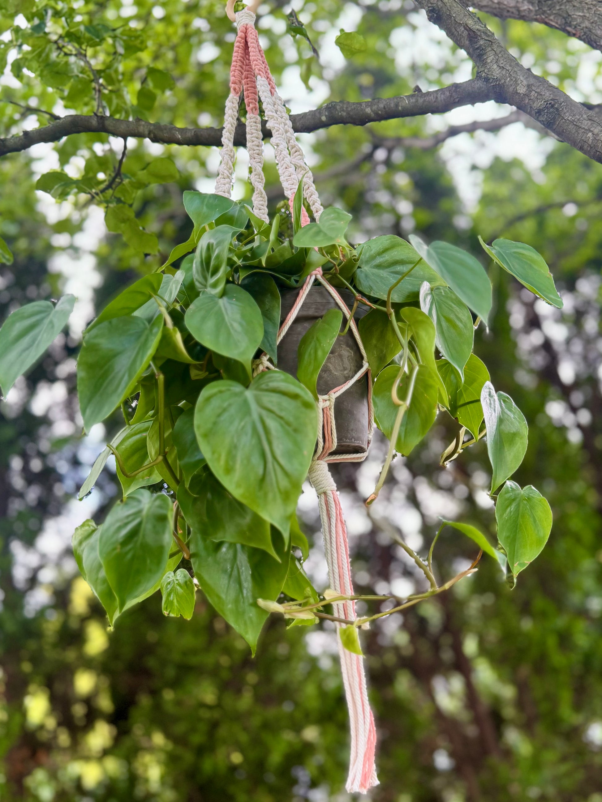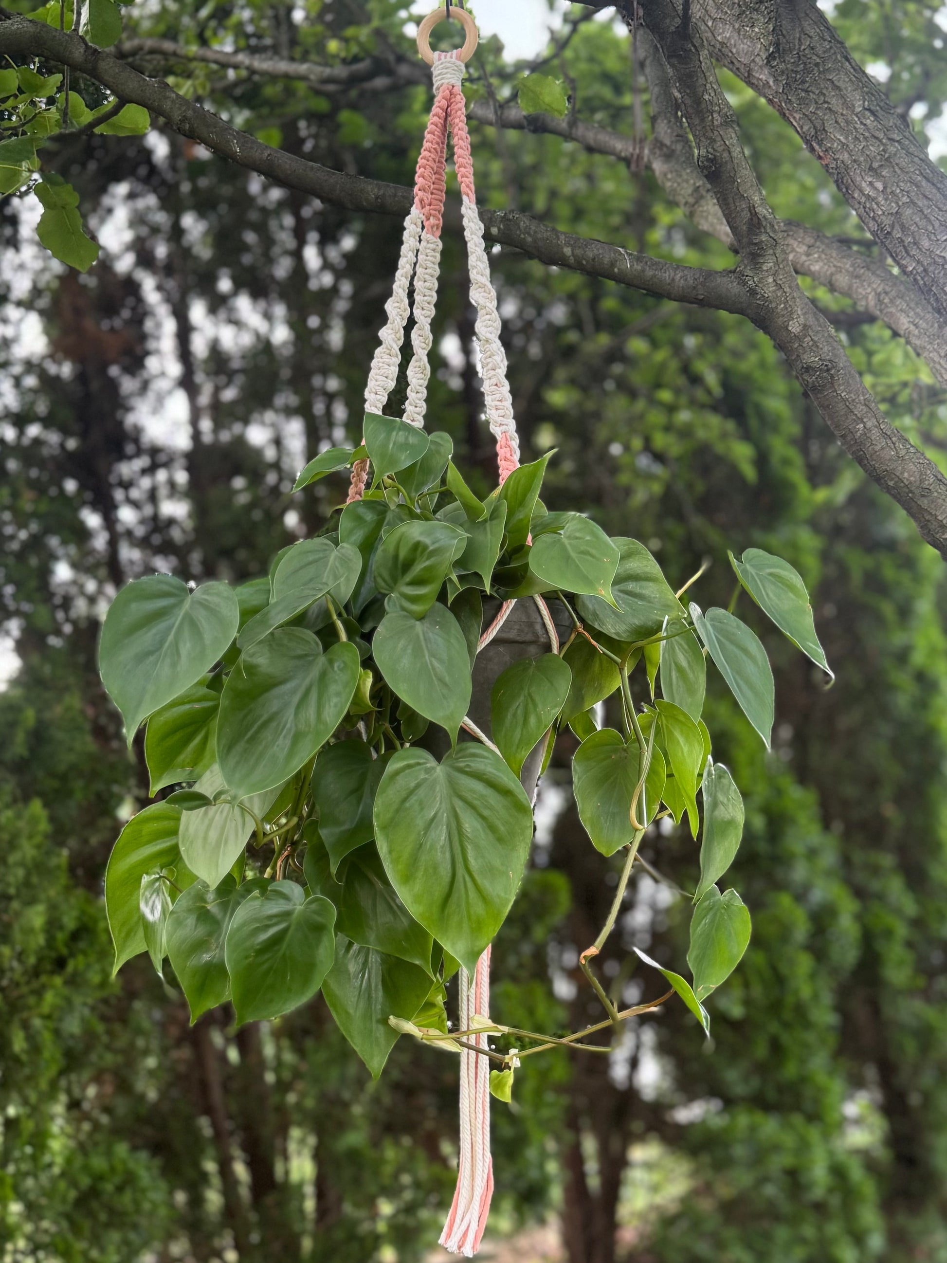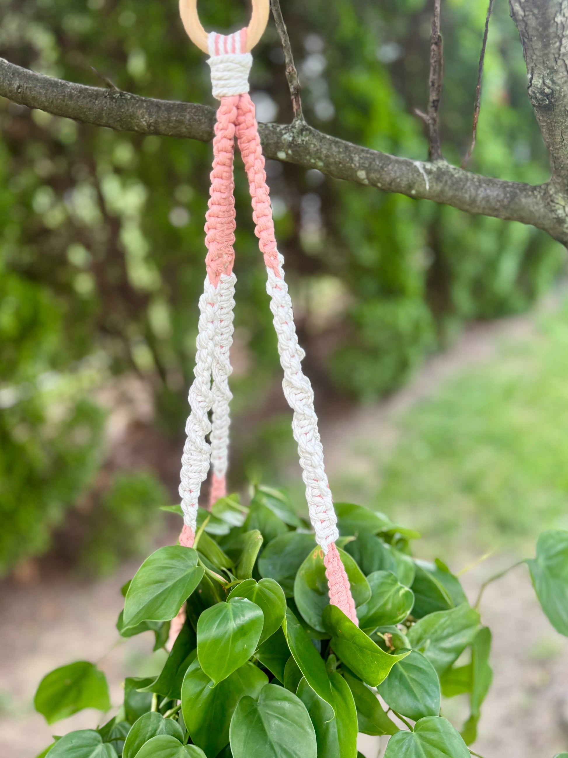 Add a pop of texture and color with the Hannah Hanger — a two-toned macramé plant hanger designed to elevate your space. Hand-knotted with care, it’s perfect for holding your favorite small to medium plants and bringing a cozy, boho vibe to any room.
