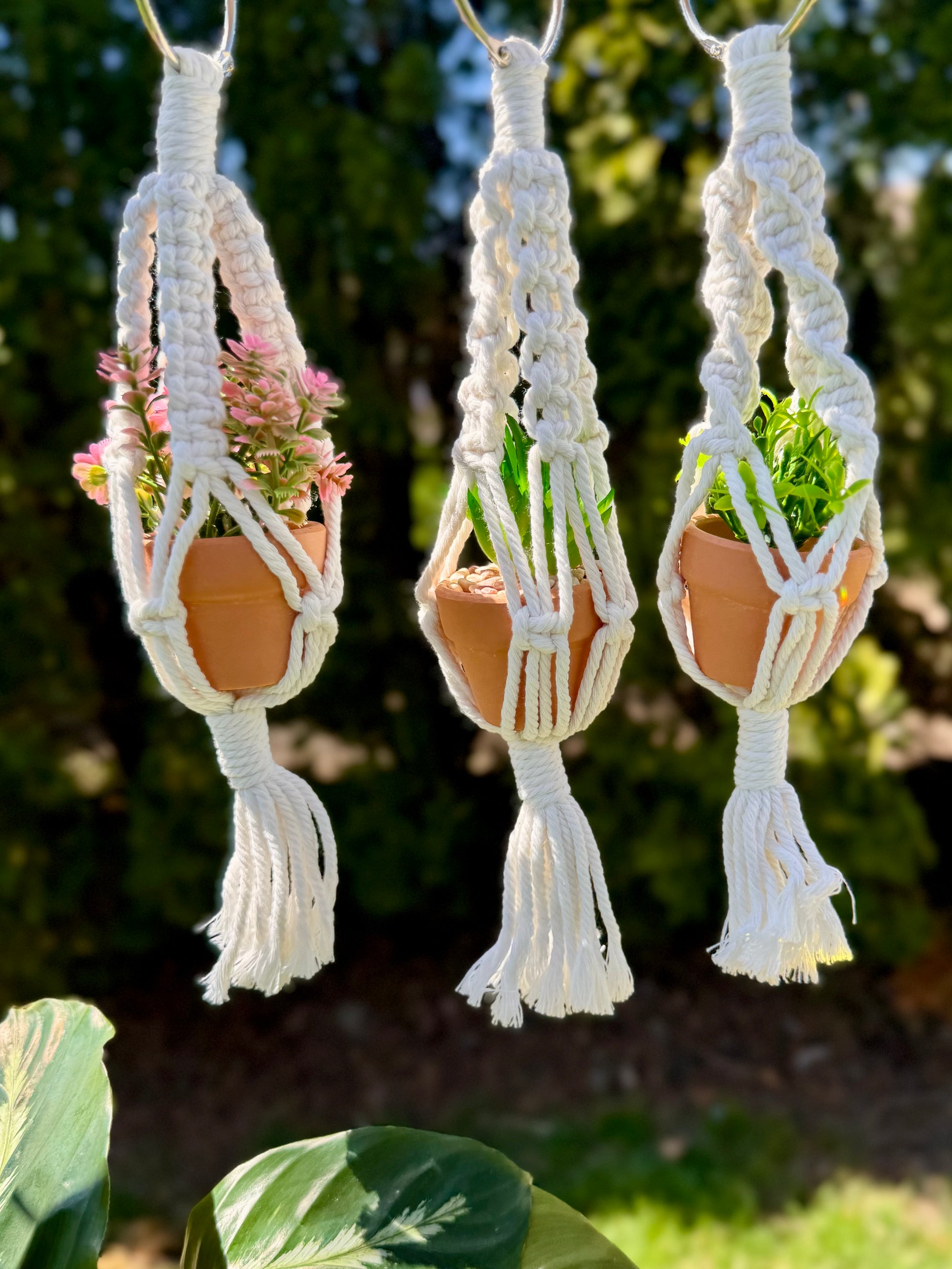 Mini macramé plant hanger that adds a touch of charm and personality to your ride.